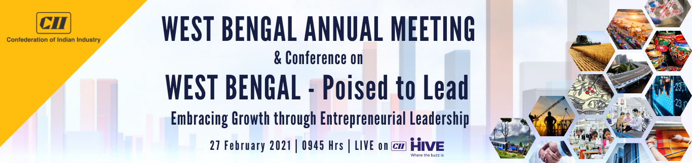 Coinciding with West Bengal Annual Day 2021, CII is organizing a conference on West Bengal – Poised to Lead: Embracing Growth through Entrepreneurial Leadership, a platform designed to restore, rethink and reconfigure overall growth between all the stakeholders of the state of West Bengal on 27 February 2021 through CII HIVE Platform.